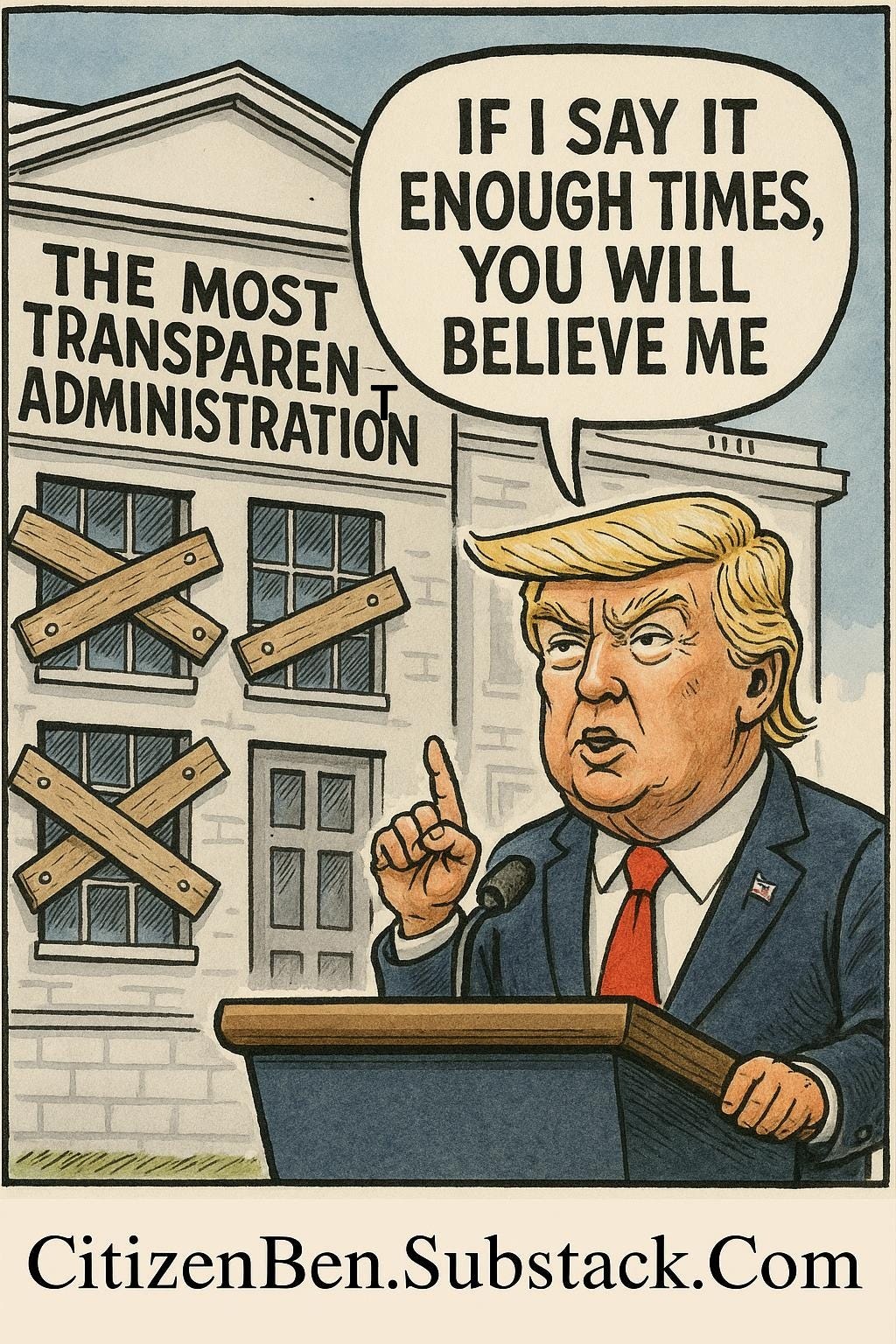 Reality: Gagged reporters, tightened congressional access, classified costs, donor shadows, and datasets dimmed or delayed. That’s not transparency. That’s a blackout with a chandelier.